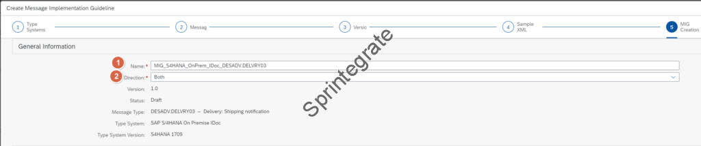 Provide a Name and Direction. In my case I have given the name MIG_S4HANA_OnPrem_IDoc_DESADV.DELVRY03 and Direction: Both.