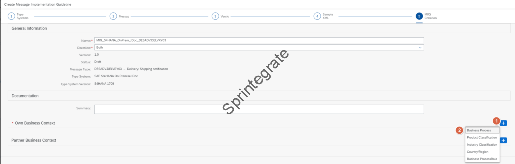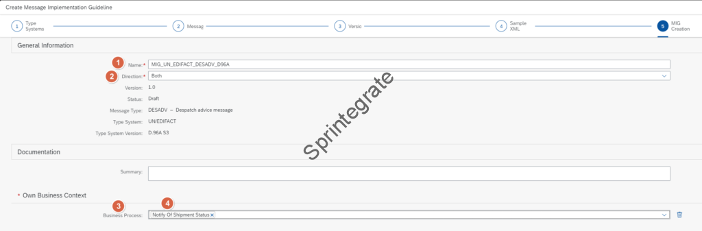 Provide a Name: MIG_UN_EDIFACT_DESADV_D96A ( in our case) and Direction : Both. Provide a Business Context as well.