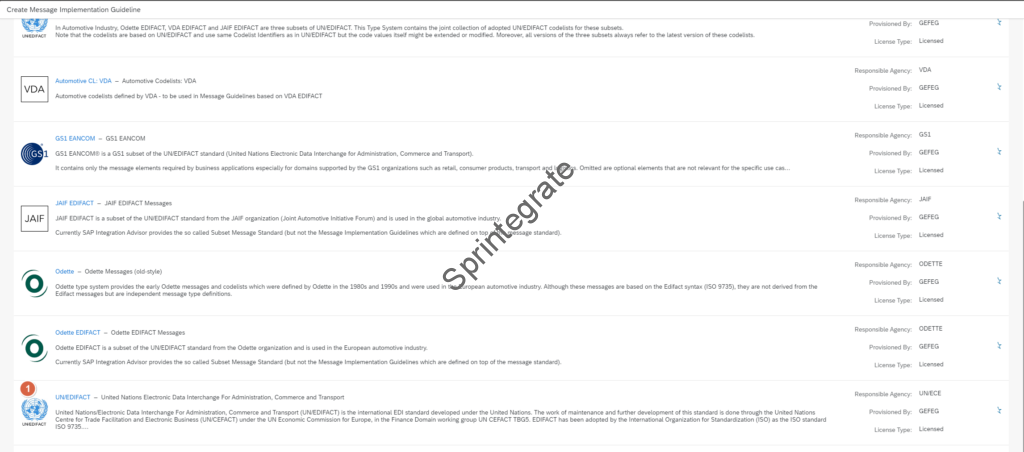 As mentioned in previous section we will create map the IDoc to a EDI file of format EDIFACT DESADV D96A. We need to create a MIG for this and we will follow the same process as for the IDoc MIG.