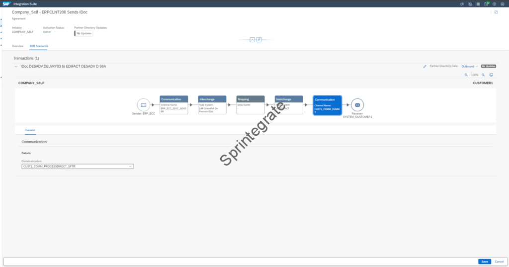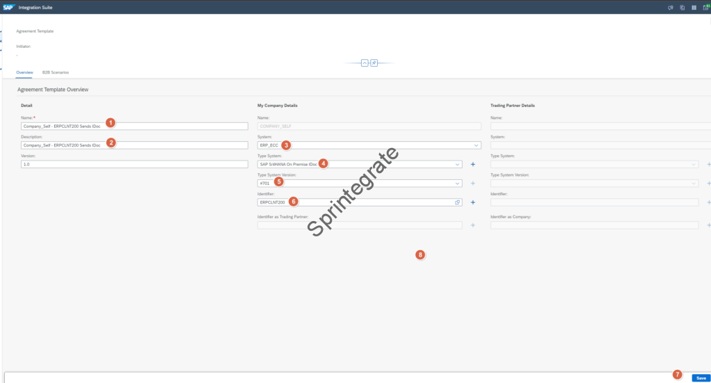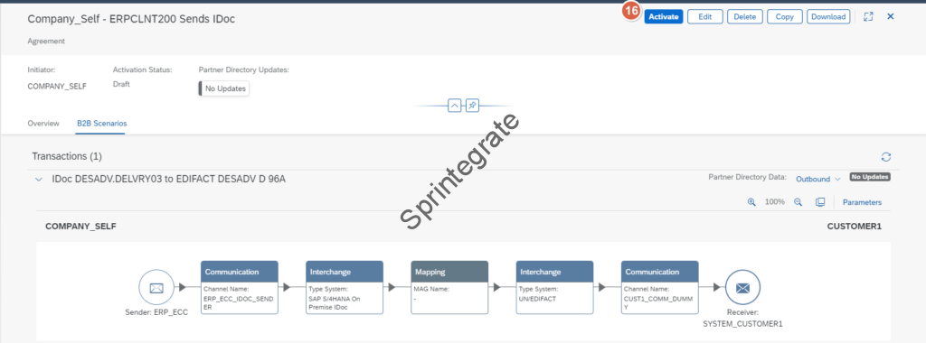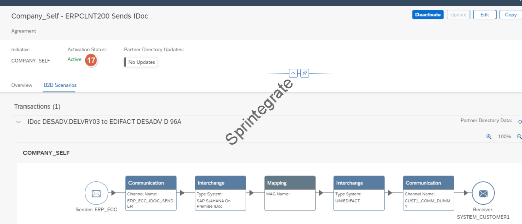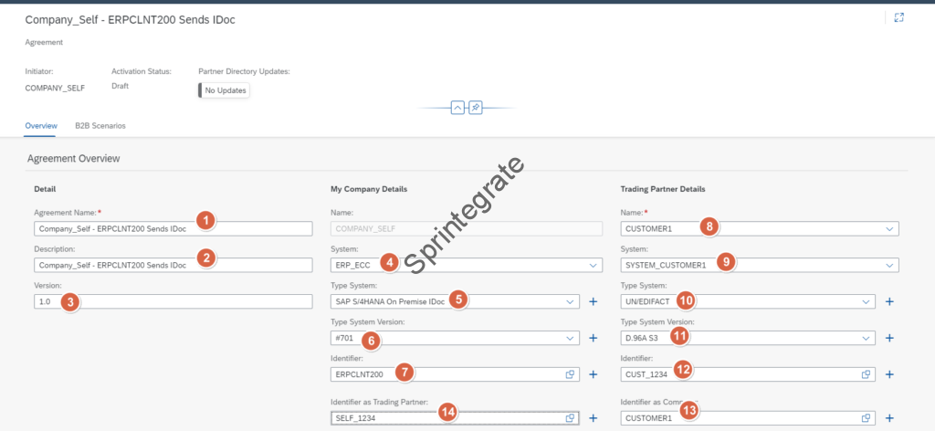 - Agreement Name: Company_Self – ERPCLNT200 Sends IDoc