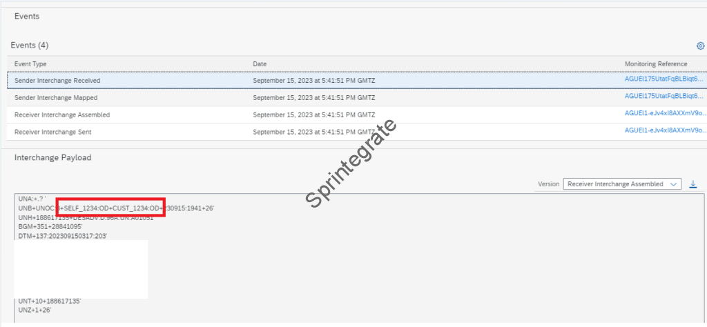 - Sender Identifier and Receiver Identifier are also different in the Sender and Receiver section in line with out Configuration.