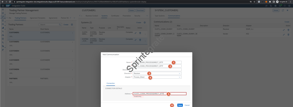 As we had mentioned in our requirement, we would like to deliver the EDI Message over SFTP / FTP to our Trading Partner. At this moment Trading Partner Management on the Receiver Side only Supports AS2, IDoc,SAP RM and SOAP 1.x Adapters. So e will create a “Dummy” channel with a “Dummy” endpoint. In Nov 2023, SAP released the support to use ProcessDirect as a Receiver and Sender Adapter for Trading Partners. We will hence use a ProcessDirect Adapter now to handle our SFTP Based Routing.