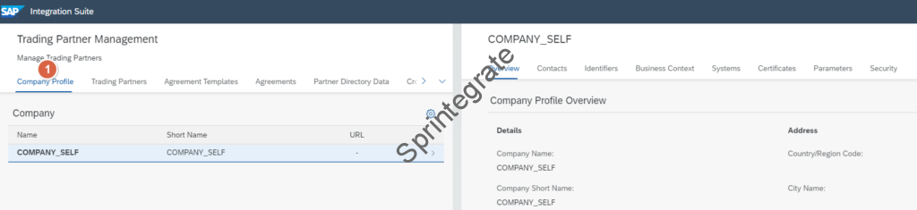 Navigate to B2B Scenarios on your Integration Suite and Tab : Company Profile. If you have completed all pre-requisites of previous section, you will see your Company as below