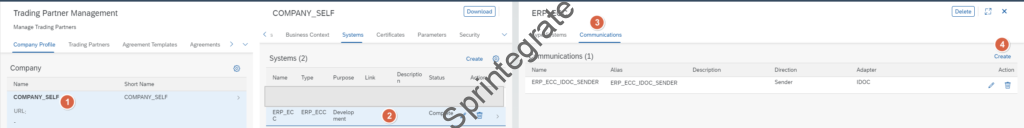 Navigate to Systems –> Communications of your Trading Partner and click on Create