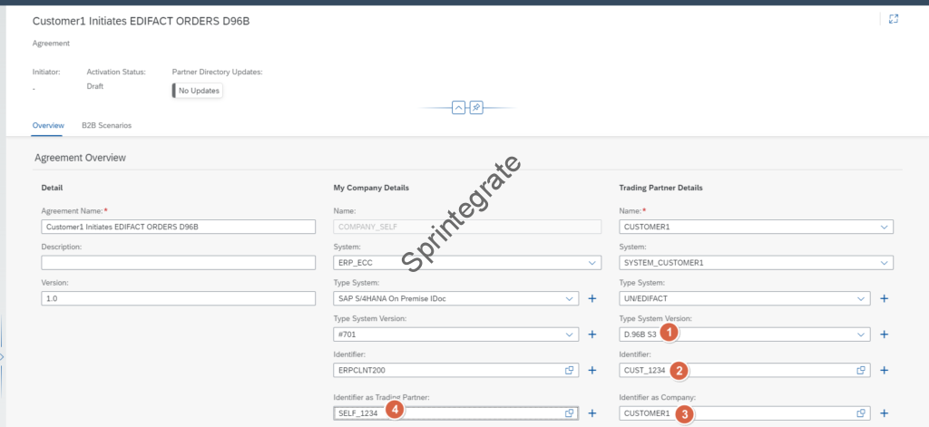 In this section, we will create a Agreement Template in our Trading Partner Management. The Agreement Template here is where CUSTOMER1 is the Initiator and ERPCLNT200 is the Reactor