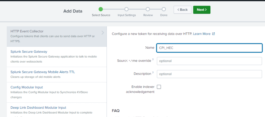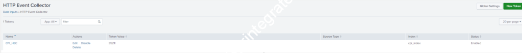 - Navigate to Settings – Data Inputs – HTTP Event Collector