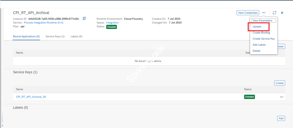 Create / Update Service Instance