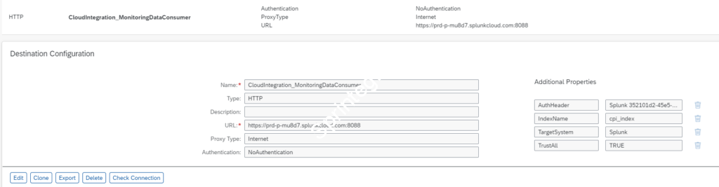 Create a Destination : CloudIntegration_MonitoringDataConsumer
