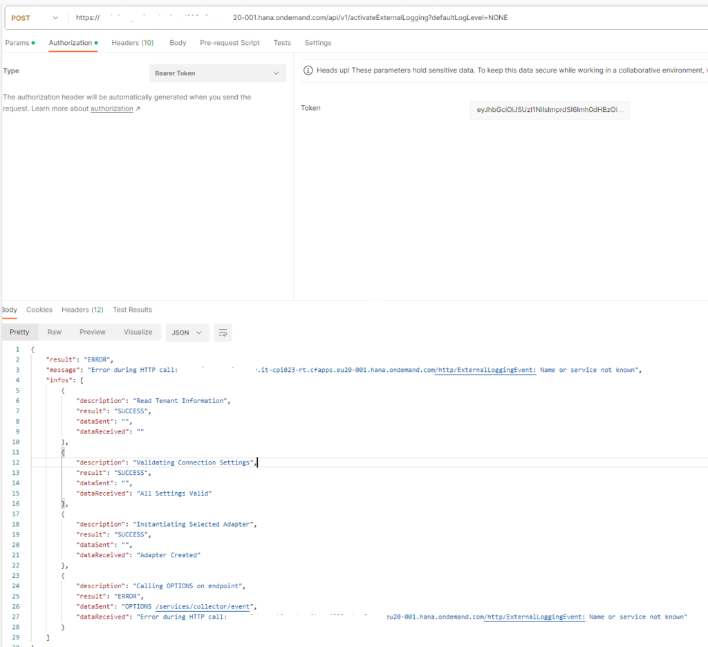 "dataReceived": "Error during HTTP call: XXX.it-cpi023-rt.cfapps.eu20-001.hana.ondemand.com/http/ExternalLoggingEvent: Name or service not known"