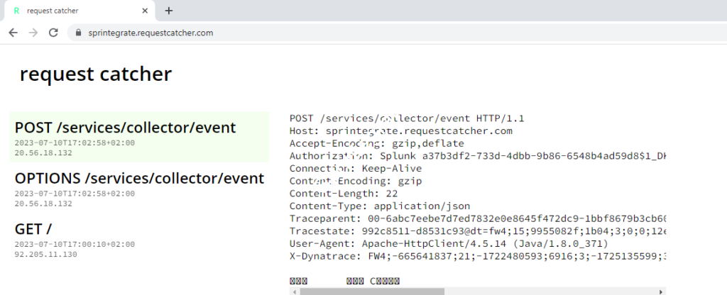 As we have seen when I pushed the request to requestcatcher.com vs the CPI endpoint, the destination has some hard rule. The URL for your custom HTTP Listener should only contain the hostname as https://hostname and the URL should be https://hostname/services/collector/event .
